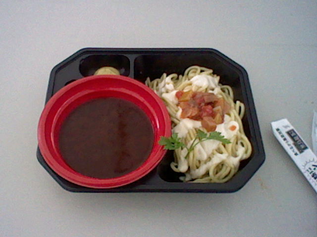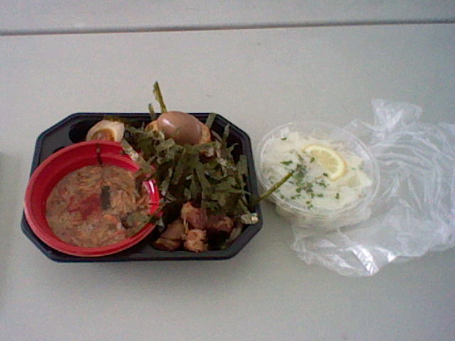 写真では見えにくいと思いますが、韓国のりはつけ汁の中に入れられています。つけ汁は牛肉も入っていて、味付けはコチュジャン系。悪くはないのですが、今ひとつインパクトに欠ける感じがしました。辛い方を選択した方が良かったのかもしれません。