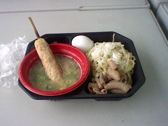 トッピングの鳥もつ煮も微妙。こちらは味はしっかりついていて存在感がありますが、むしろ存在感がありすぎです。かなりの歯ごたえがあるので、麺と一緒に口に入れて噛むと、もつだけが口の中に残る結果になります。